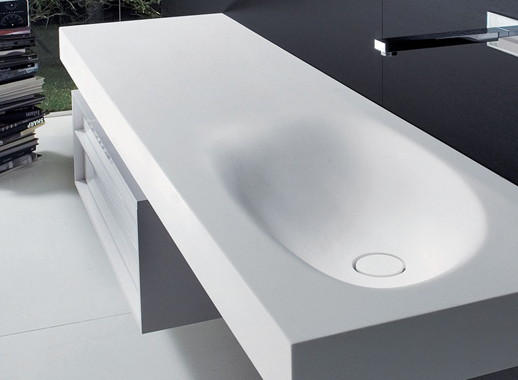 The Falper Shape is a bathroom vanity that expertly utilizes its linear profile to accentuate any washroom setting. It has four widths in 93, 123, 153, and 183 cm, a height of 33 cm, and a standard depth of 48 cm. The main draw of this restroom implement however, is its seemingly organic-looking Biobased Cristalplant washbasins, which can either be single or double. You may configure the washbasin to be built-in with its base unit, or you may choose to separate the base cabinet unit from the wash basin itself, creating two different components that make up one restroom system.