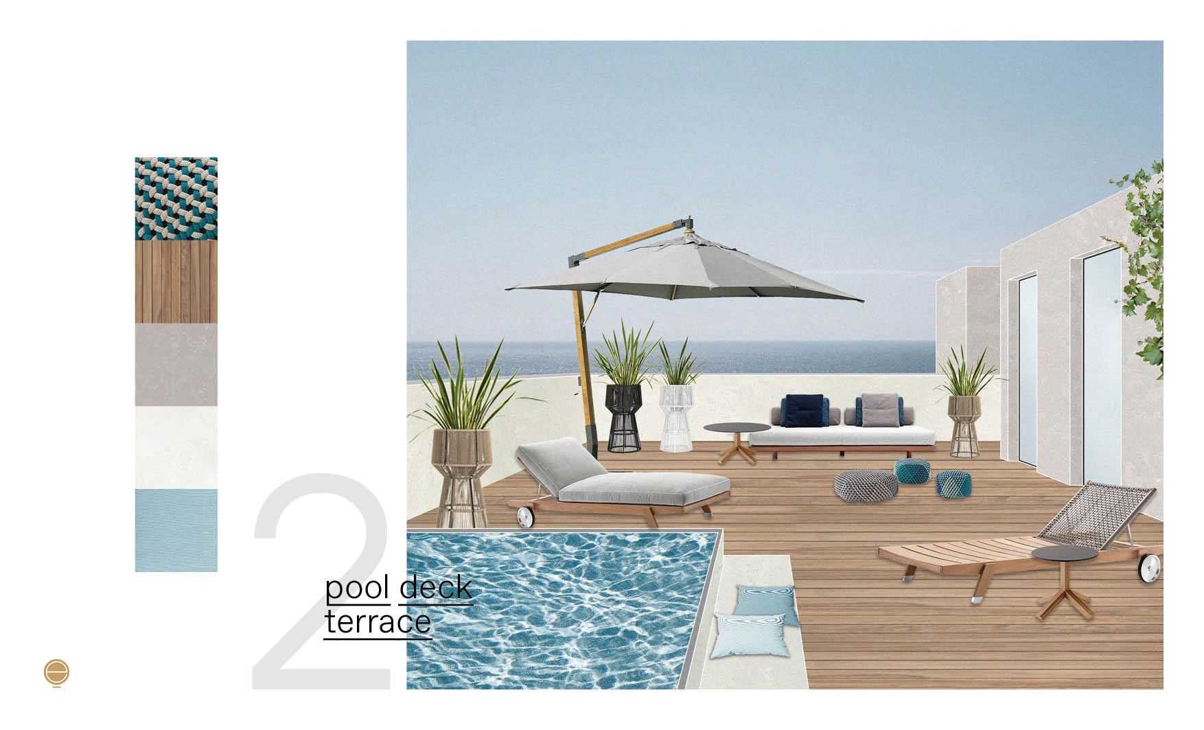 The scent of the sea, the contrast between neutral tones and bright colors, shrubs, flowers and succulents, cozy atmospheres capable of transmitting a sensation of well-being and tranquility. For our three outdoor terrace proposals we have been inspired by a truly Mediterranean mood, where the tradition of woven wicker meets modern design and the technological study of new furnishing solutions. Lounge, pool deck and dining: three solutions of luxury outdoor design for a patio decor 100% made in Italy.