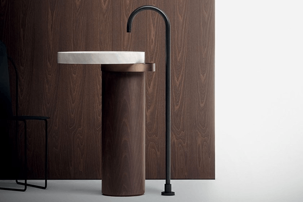 Sanitaryware like the Falper Eccentrico Freestanding Basin comes in a wide array of finishes so that you may achieve your desired look without difficulty. There are six marble choices for your washbasin, one of which is the Cristalplant® biobased material. The freestanding base unit has eleven available wood finishes. There are also finishes available for the metal towel ring in Stainless steel titanium, Brushed Copper, Brushed Brass, Onyx, and Satin stainless steel. Any combination of these selections will result in a beautiful freestanding washbasin for your bathroom.