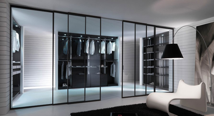 Rimadesio also produces sliding doors for walk-in closets such as Graphis light. It is a solution to furnish the sleeping area and perfect to integrate with Graphis plus sliding doors, creating a sleek, uniform space. Rimadesio, an Italian company dating back to1956, is famous for its minimal solutions in glass and aluminum.