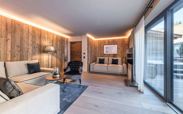 Montchalet’s VIP Suite comes in two versions: one with a private Finnish sauna and whirlpool on the terrace, and another featuring a steam bath, infrared sauna, whirlpool, and private cinema.