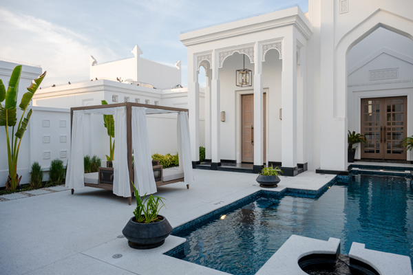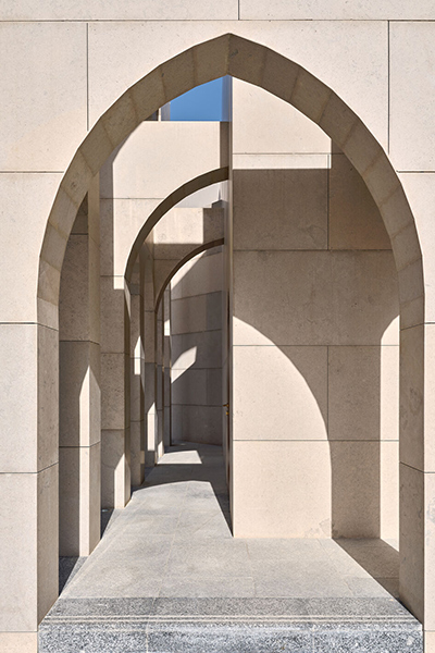 Classical Islamic architectural features are harmonized with the functional aspects of modern design, showcasing a deep love for their cultural heritage and their mastery in managing natural light and the shadows cast by white geometrical forms.