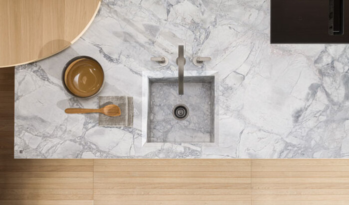 That is why the natural stone has been processed with cutting-edge technology, for example by lightening the panels to ensure the comfort of an ordinary kitchen.