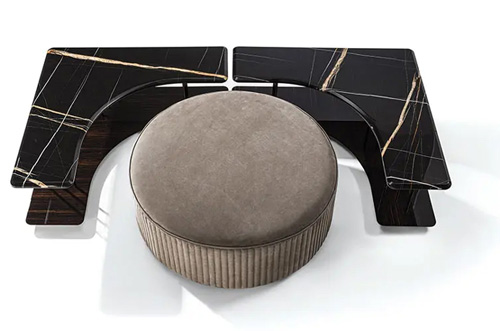 A philosophy that can be appreciated in each individual piece of furniture, splendid objects of art such as SATURNO, the modular coffee table designed by Giuseppe Viganò, which reveals a concept of minimal aesthetics, where synthesis produces Poiesis, or innovation.