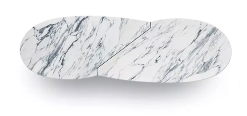 “Infinitamente” is an adverb of manner and means infinitely, a reference to the double oval shape of the table, which recalls infinity, yin and yang.