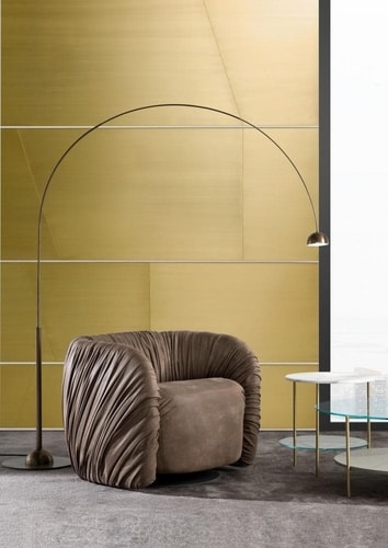 This way, in addition to design furnishings, interesting solutions for interior finishes can also be found in the DeCastelli portfolio. Like Marea, created through superimposing oxidation processes on brass, copper, and iron or Circle Wall, a spectacular overlapping of round modules that become a wallcovering system that plays on the warm nuances of brass.