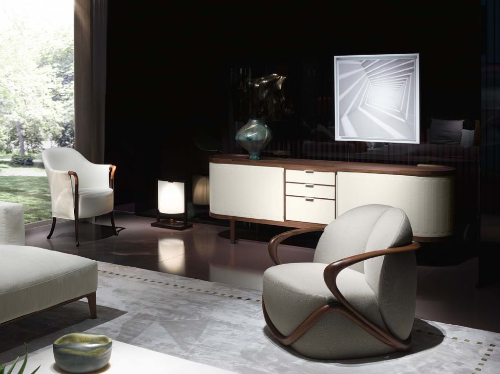 7/ Giorgetti This year marks 120 years of the “Giorgetti style”. The company was founded by Luigi Giorgetti in Brianza in 1898 and has continuously evolved over the years, becoming an international icon of its signature style, and quality. International success was inevitable for this brand, which has won many awards and is often selected for exclusive interior projects, such as Steven Leung’s Club Marinella in Hong Kong. The shape and elegance of each furniture piece is a testament to the high quality of craftsmanship, material, and design that remains at the core of Giorgetti. Rosella Pugliatti’s ‘HUG’ armchair is a great example of the iconic and signature look.