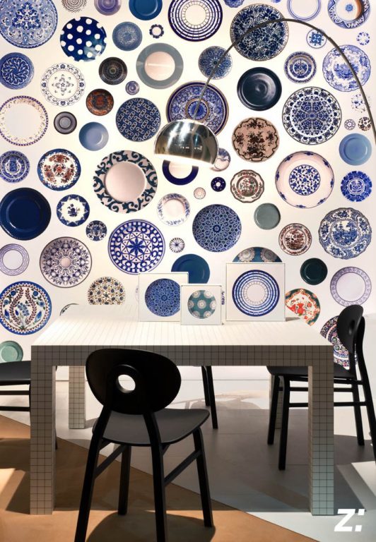 3/ Zanotta Functionality and quality reign supreme with this brand, which is also committed to sustainability and cultural values. At MDW 2018 their showroom featured the Elipse chair paired with the Quaderna 2600 grid pattern table and Achille Castiglioni’s iconic Arco lamp. It’s not all for the living or dining spaces, Zanotta has many accessories to sprinkle around the home like the Milo mirror. The Noli chair by Ludovica + Roberto Palomba expresses Italian craftsmanship with modern colors through its theme “Echoes of Liguria.”