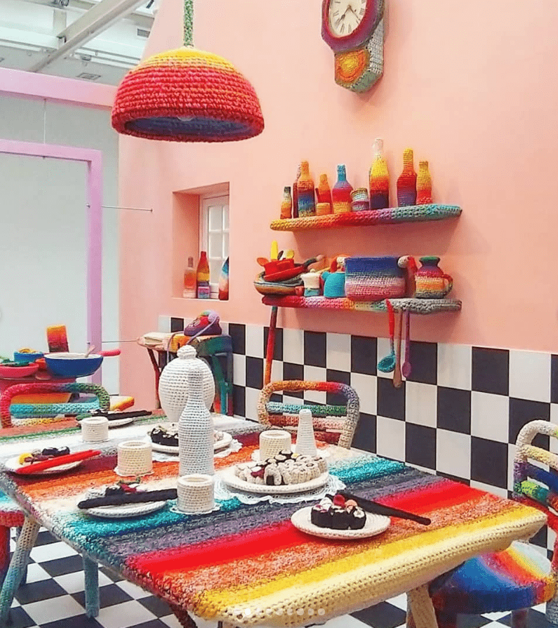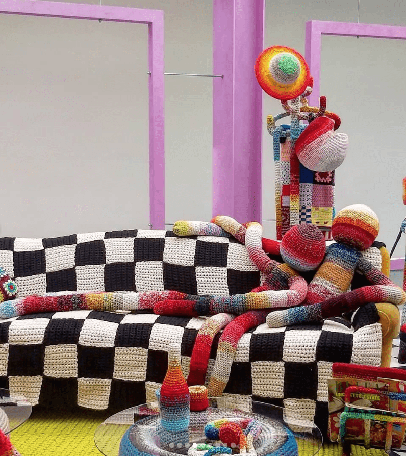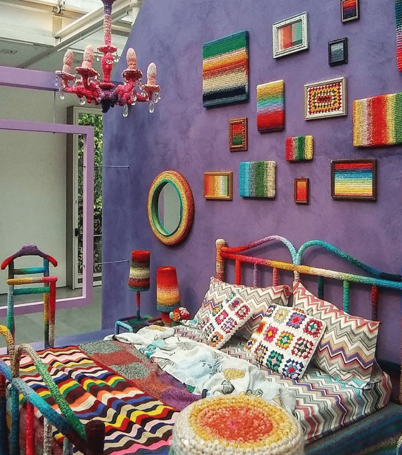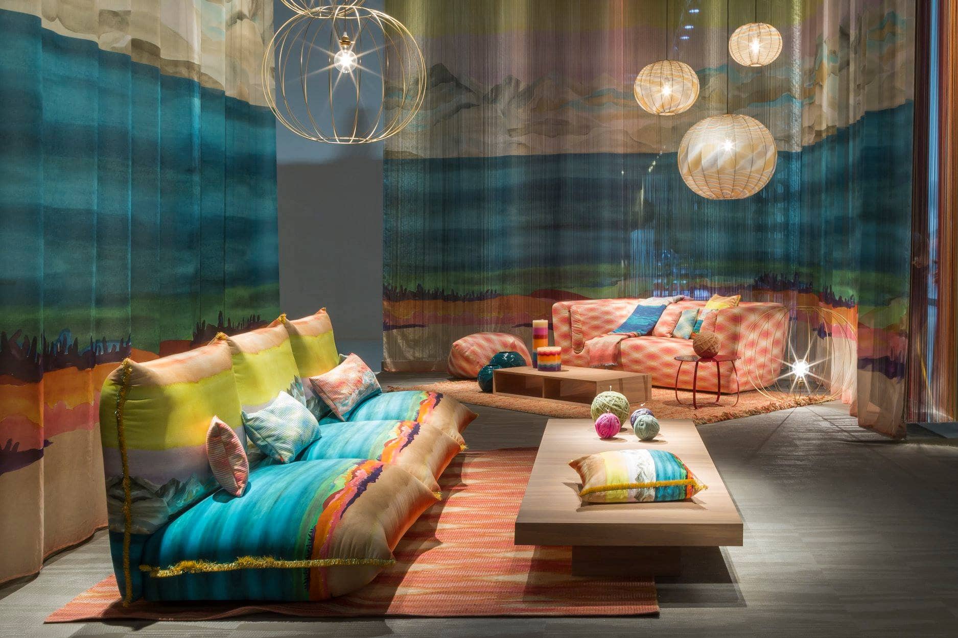 Missoni Home’s 2019 collections includes Panoramas, which was portrayed through interior scenes at Salone del Mobile. Nature and texture proved to be the great influences here, and color of course. The Missoni Home showroom presented Stripes Mosaic, while at their showroom in Brera, the brand made Home Sweet Home, an entire open-sky house decked out with Missoni knit objects and materials decorating each element of living spaces.
