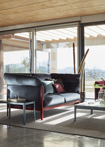 Cotone, on the other hand, is a collection of sofas designed by Ronan & Erwan Bouroullec that sees the addition of a cozy sofa characterized by an extruded aluminum structure available in four colors: gray-blue, red, champagne, and graphite.