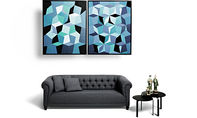 In contrast, the Geo sofa’s form is large and generous. This sofa also features a metal frame available in a chrome or painted finish. This composition was designed to ensure that the voluminous seat and slender legs find the right balance.