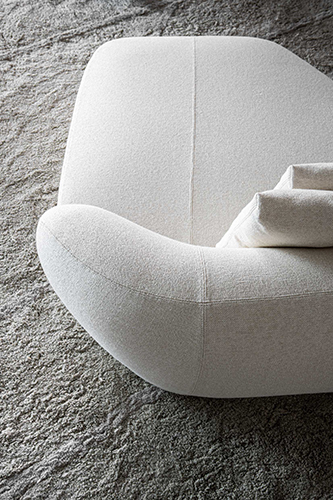 Gogan, on the other hand, is a sofa that owes its name to nature and in particular, to Japanese stones that are polished by time and water, a source of inspiration for this project. The shapes are soft and irregular, with the seat slightly tilted towards the back to giving extreme comfort to the sofa. The fabric, recently rediscovered from the Moroso archive, is inspired by the 1970s and reproduces the surface of a river stone thanks to its rich bouclé texture. Gogan carries the name of Patricia Urquiola, designer of some of the most interesting Moroso collections such as the Gentry sofa and Gentry Extra Light, a project born from the search for thorough and measured comfort.