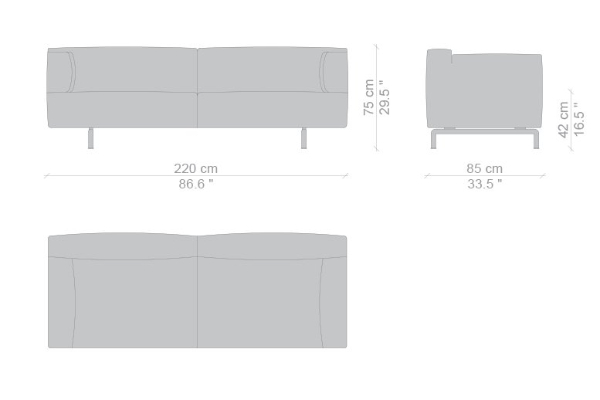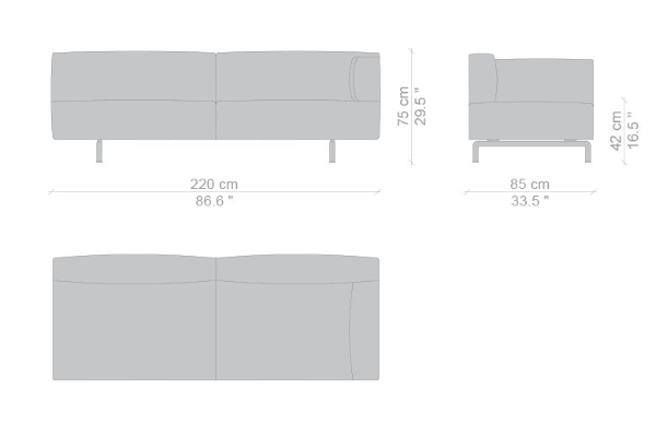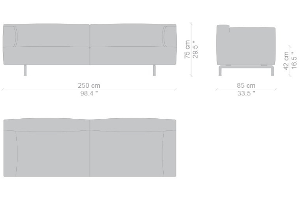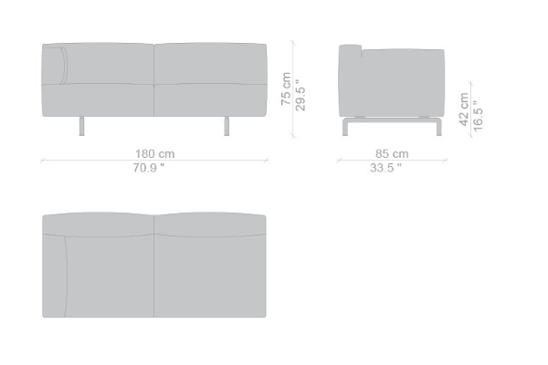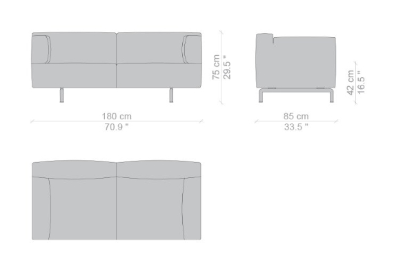 The Cassina Met is modular to an extent, as certain components can be attached to the main unit. The smallest 250 20 model measures 180x85x75 cm while the 250 10 model measures 250x85x75 cm. There are other components included in this collection that can be bought separately or incorporated into the set. Other options such as a corner or even larger units can be ordered by request. With options like these available, you will be sure to find a suitable sofa unit or combination of modules that will enhance any area with ease.