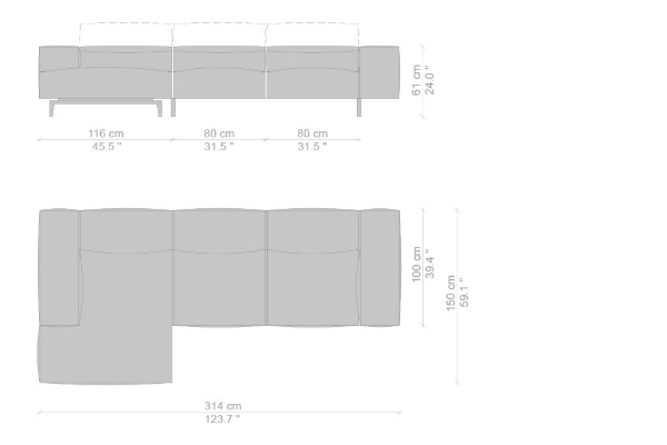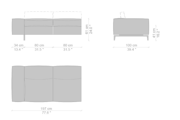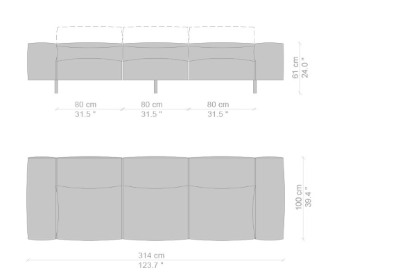 The Cassina Scighera Sofa's modular capabilities come into play when you want to populate a large area with a beautiful seating implement. The base unit for this sofa system measures 314x100x61 cm, but with numerous modular units available, you may add any number of components to your base unit. The modular nature of the Cassina Schighera allows you to select any number of additions to the base unit, depending on the size of the space that the sofa system will populate. For a more accurate estimation, size requirements will be available only upon request.