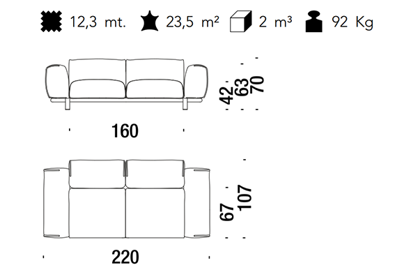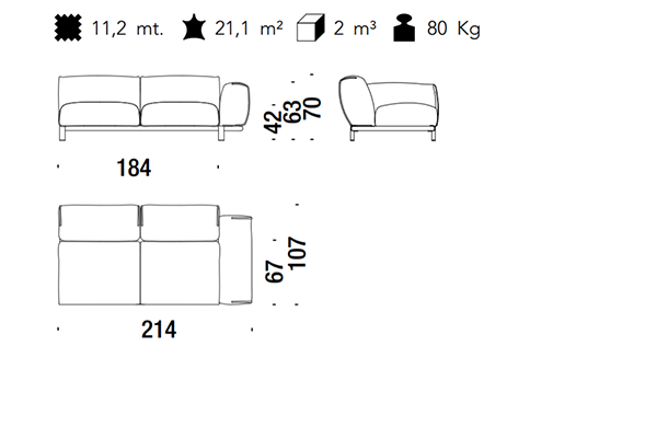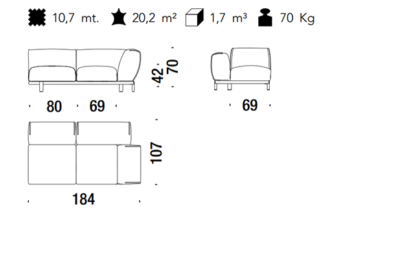 The Moroso Bold Sofa comes in several sizes that can accommodate any location that you have in mind. The basic version of this seating implement comes in three sizes: 107x220x70 cm, 107x245x70 cm, and 107x300x70 cm. The Bold line also has a pouf in two sizes: 92z92z42 cm, and 83x105x42 cm. There are also modular variants of the Bold. The modular configurations are varied, and any information required for these configurations will be available upon request. This sofa system can easily occupy any space, regardless of an area's size, thanks to its massive form.