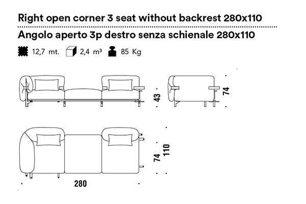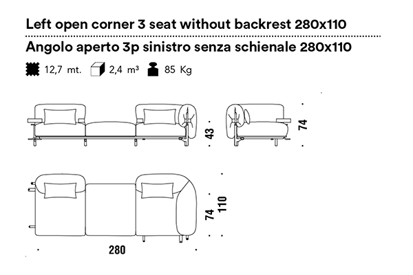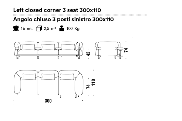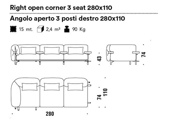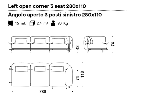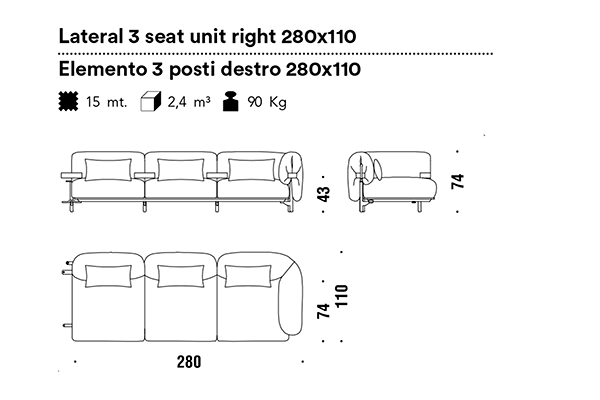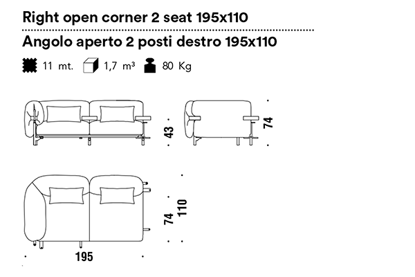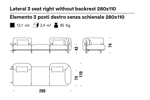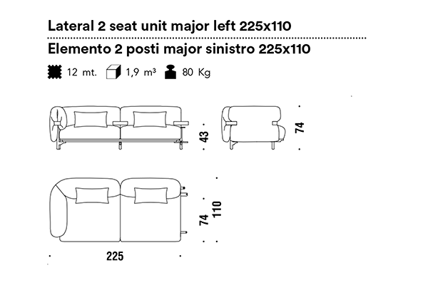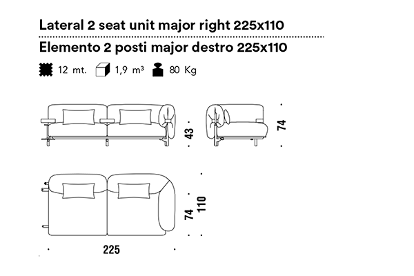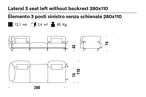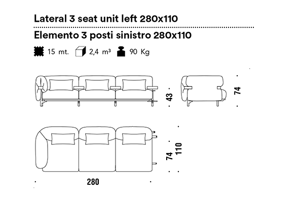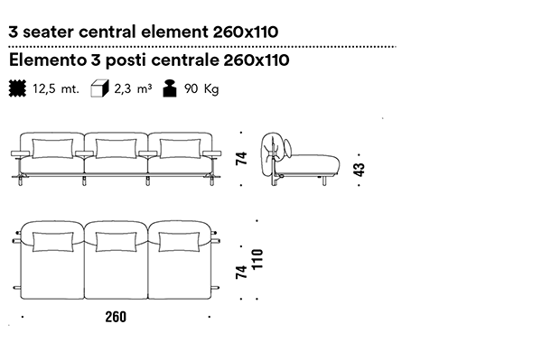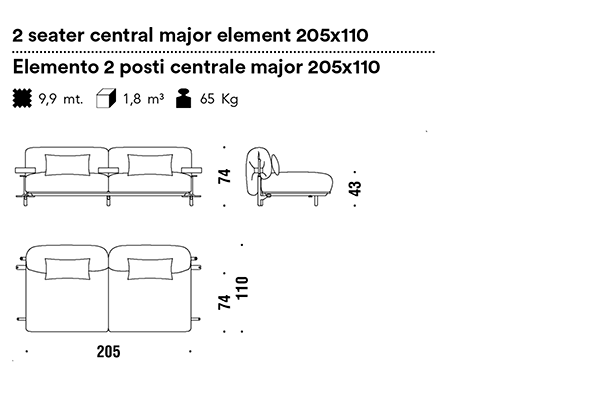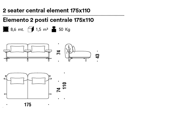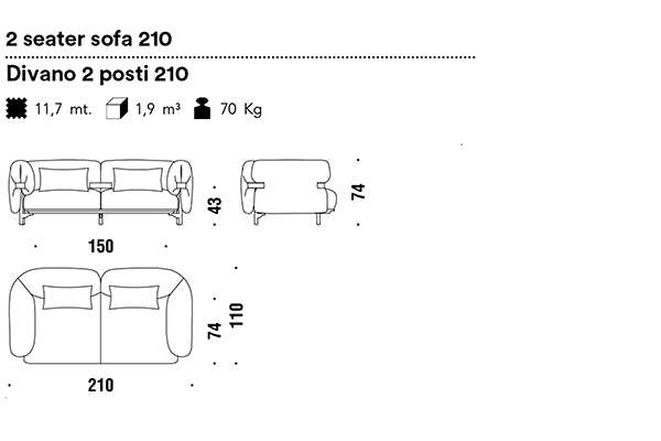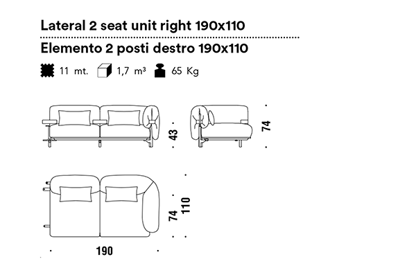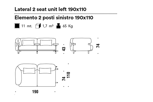 Moroso's Belt Sofa can inhabit any environment that you have in mind, regardless of its location. This sofa system comes optimally sized so that you may utilize it in any setting. The smallest, two-seater version of the linear version of this seating implement measures 110x210x74 cm, while the largest three-seater comes in at 110x300x74 cm. Modular variants of the Belt are also available: you simply have to select the components that you require to complete your ideal version of the Belt. With this in mind, the information for your chosen configuration will be available upon request.