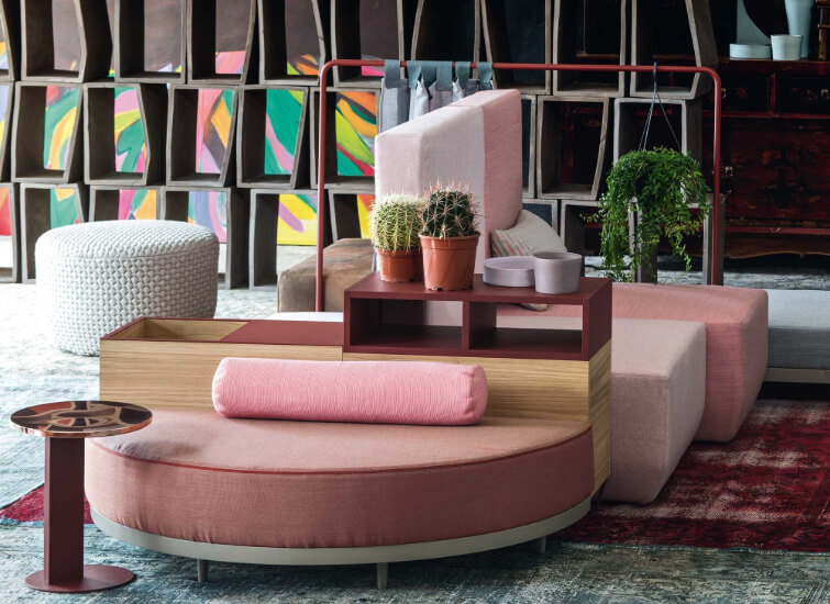 The Bikini Island of Moroso is, without a doubt, the most flexible, colourful, and unique sofa system that Moroso has in its catalogue. With almost every interior element present within its system, the Bikini Island sofa has transcended its humble origins to become a complete environment on its own. The Bikini Island Sofa, in essence, is its own room without walls. This sofa system alone can fill a space with all the necessary components. From seats to storage units and even tables, The Bikini Island Sofa is more than capable of providing you with almost everything you need.
