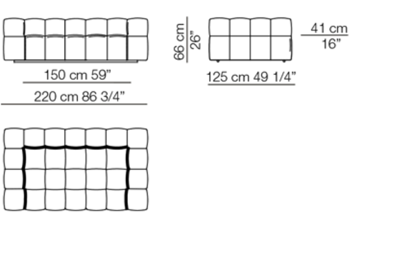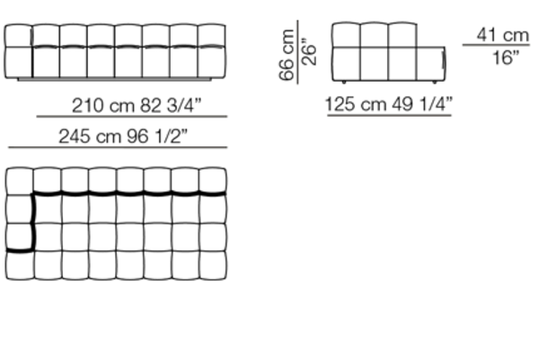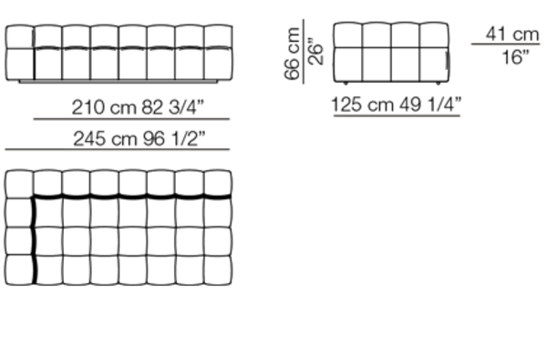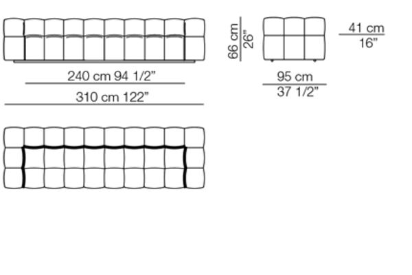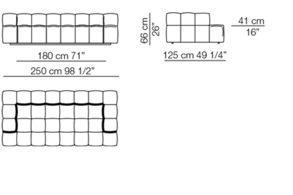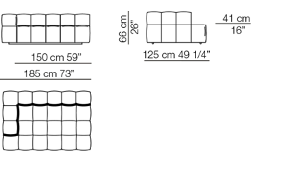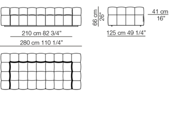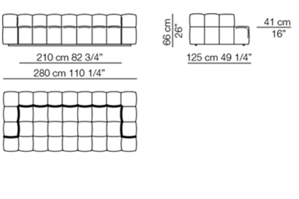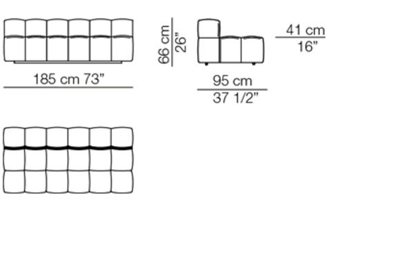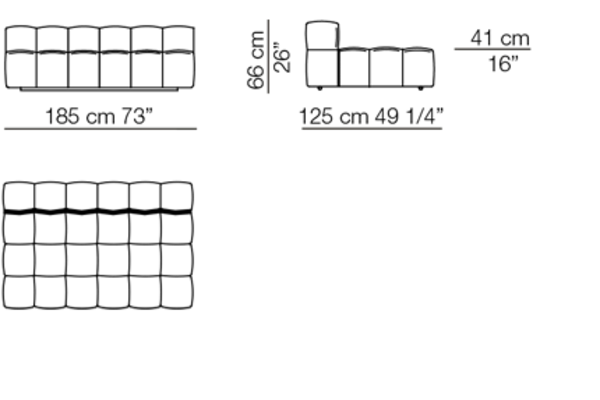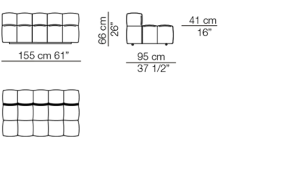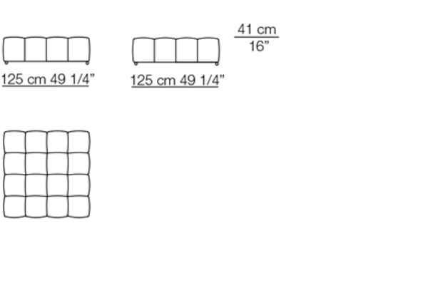The modular configurations available to the Strips sofa are numerous as you can personalize the Arflex Strips according to your taste. The basic model’s measurements are 220x125x66 cm, but your modular choices can create a version of the Strips sofa that is uniquely yours. In a sense, the Strips sofa system components are like building blocks, the assembly options are endless. The synergy between elements is the best feature of this product, it’s up to you to make everything come together.
