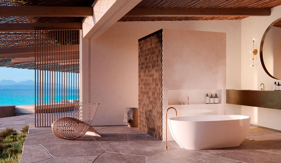 A perfect example is the Grand Park Hotel in Rovinj, Croatia, which overlooks the peninsula through the largest glass window in Europe. Inside, diverse furnishings are set in a palette of earthy tones to contrast the blue of the sea and the sky.
