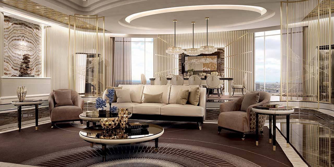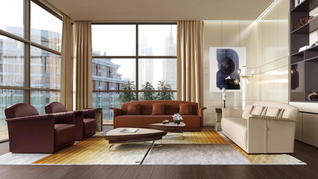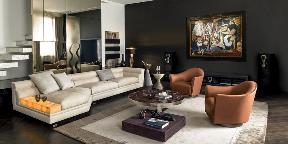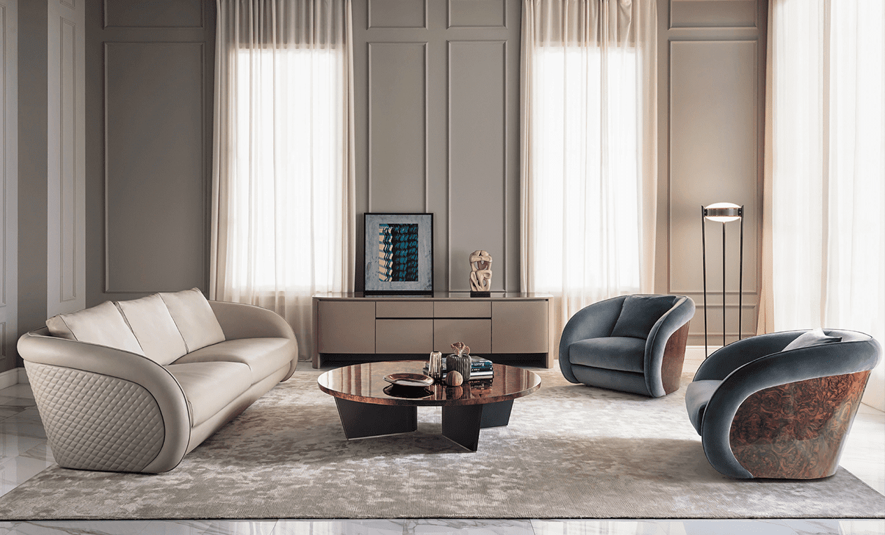 It’s not easy to fit the right high-end living room furniture pieces together to maintain cohesion while conveying luxury and taste, but that’s our job. Our team already knows the best Italian living room furniture and accessories; our goal is to match them expertly to you. You will benefit from our design industry experience and knowledge to find the best ways of matching colors, materials, and patterns as well as selecting fine, luxury pieces of Made in Italy high-end living room furniture.
